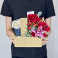 Бокс с кофе и белыми хризантемами