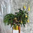 Букет хризантем с новогодними шарами