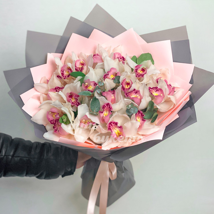 Букет из 23 белых орхидей