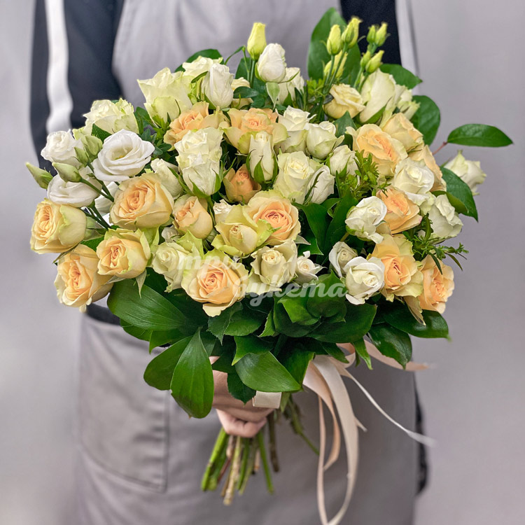 Букет из 40 персиковых и белых роз