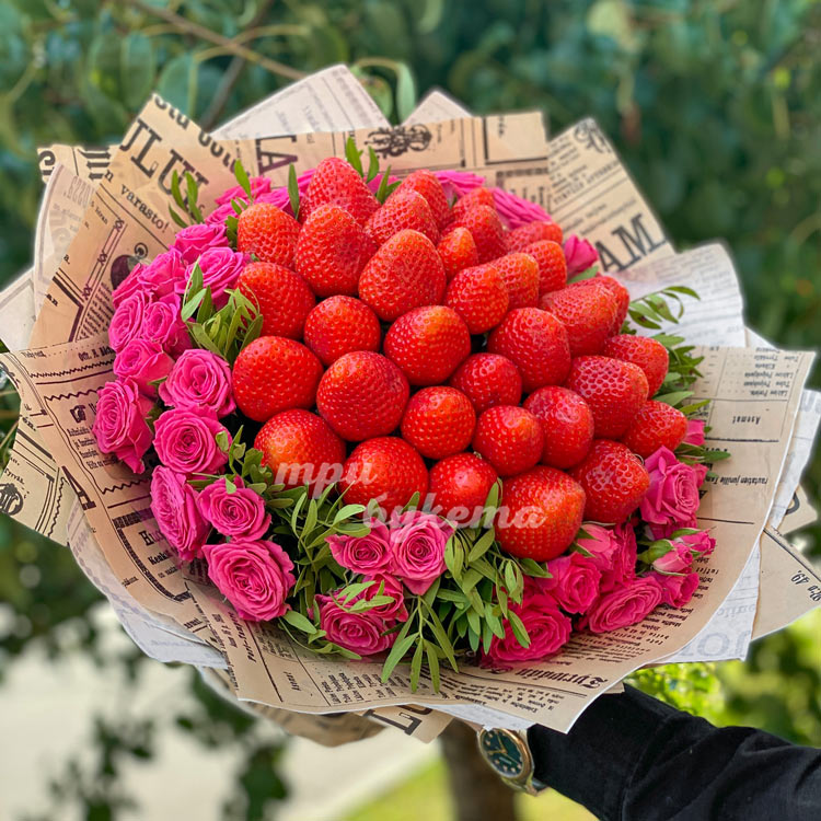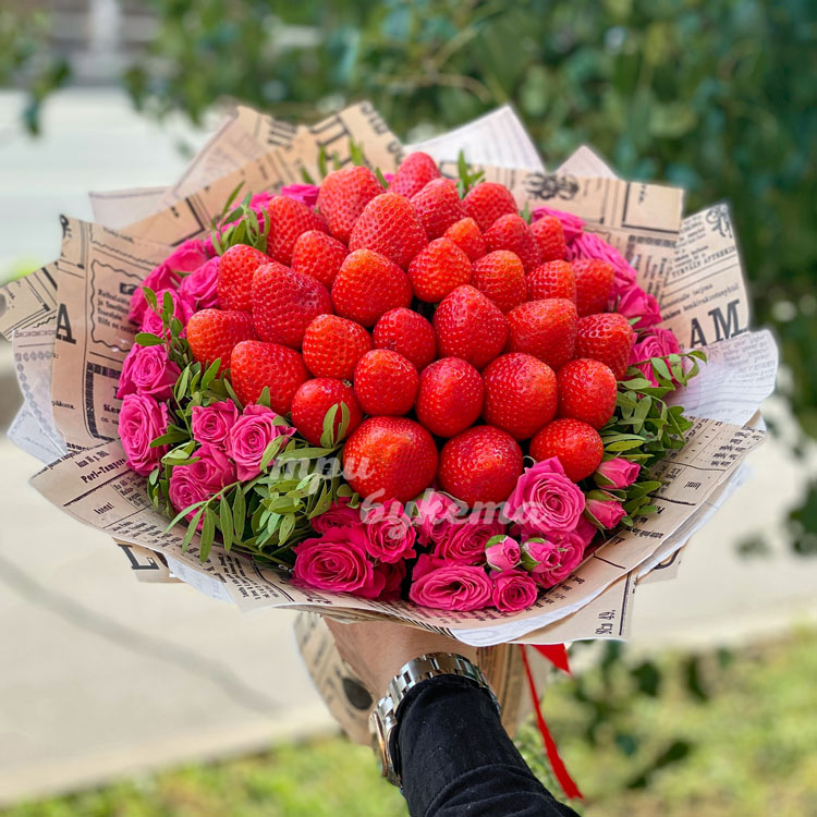 Букет из клубники и кустовых роз