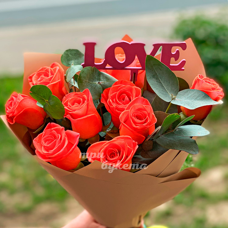 Букет из оранжевых роз с топпером