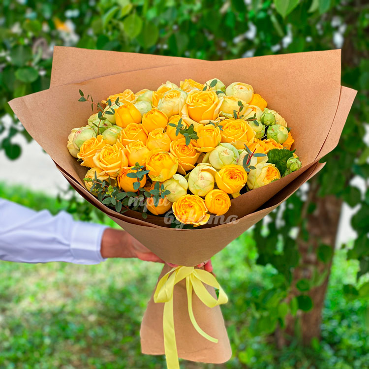 Букет желтых куст. пионовидных роз