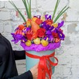 Фрукты и розы в шляпной коробке