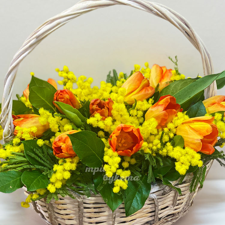 Корзина с жёлтыми тюльпанами