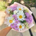 Розовый букет из белых цветов и хлопка